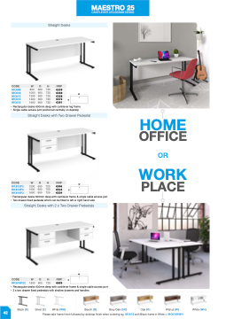 • Rectangular desks 600mm deep with cantilever frame & single cable access port • Two drawer fixed pedestal whiWch can be fitted to left orWright hand side